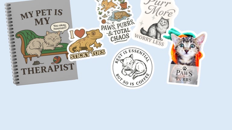 Paws, purrs, and paper things! Pet-themed stickers, cards, and goods to brighten any day.