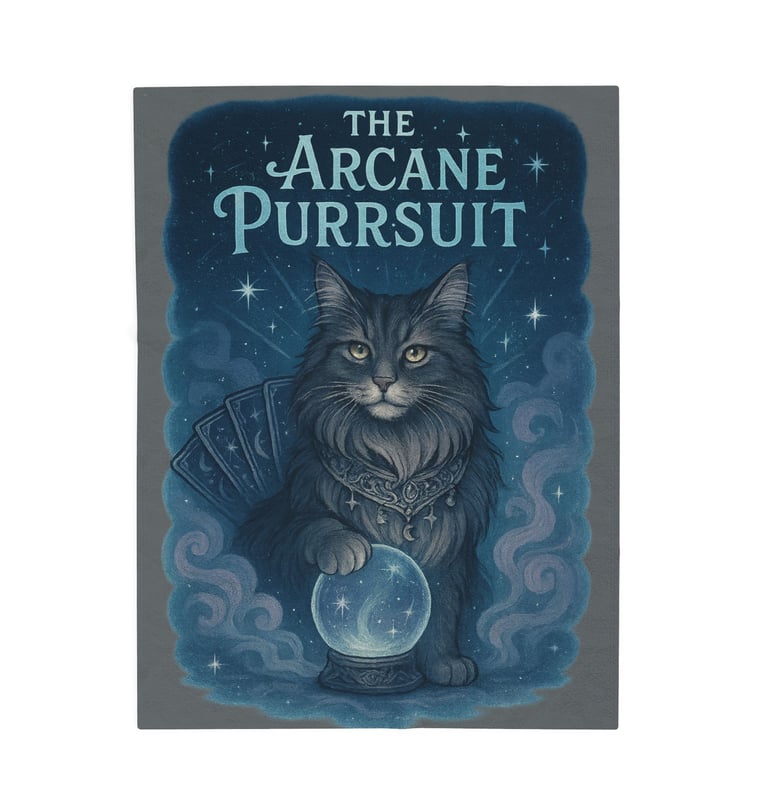 Cozy up in mystical style with this soft velveteen blanket featuring a magical black cat and starry night design.